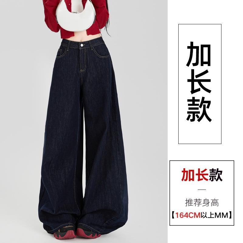 Джинсы ретро большого размера экстра темно-синие с широкими штанинами женские летние новые высококлассные с высокой талией и стройнящие прямые брюки, подметающие пол M