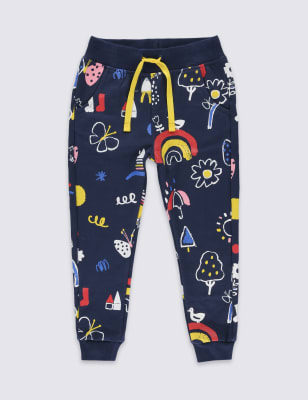 Джоггеры из чистого хлопка с разноцветным принтом для девочки 3 мес - 5 лет, Темно-синий
