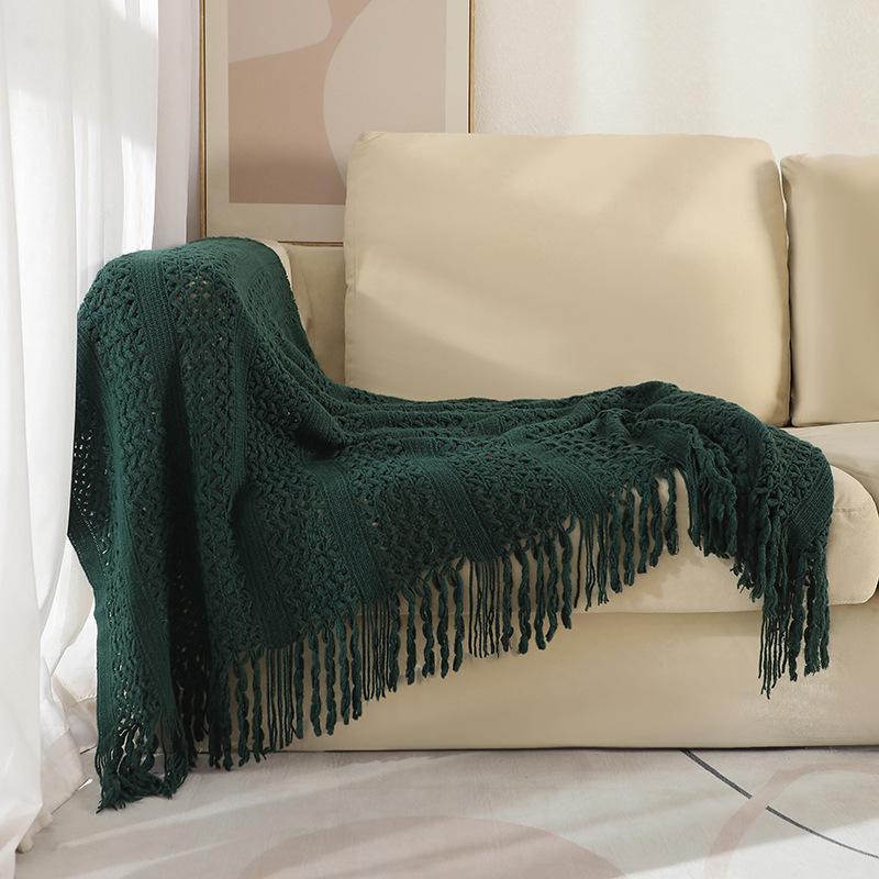 Диванное одеяло в скандинавском стиле, однотонное, летнее, для офиса, под кондиционер, для сна, вязаное, маленькое одеяло, прикроватное одеяло 127 * 152 + 15CM темно-зеленого