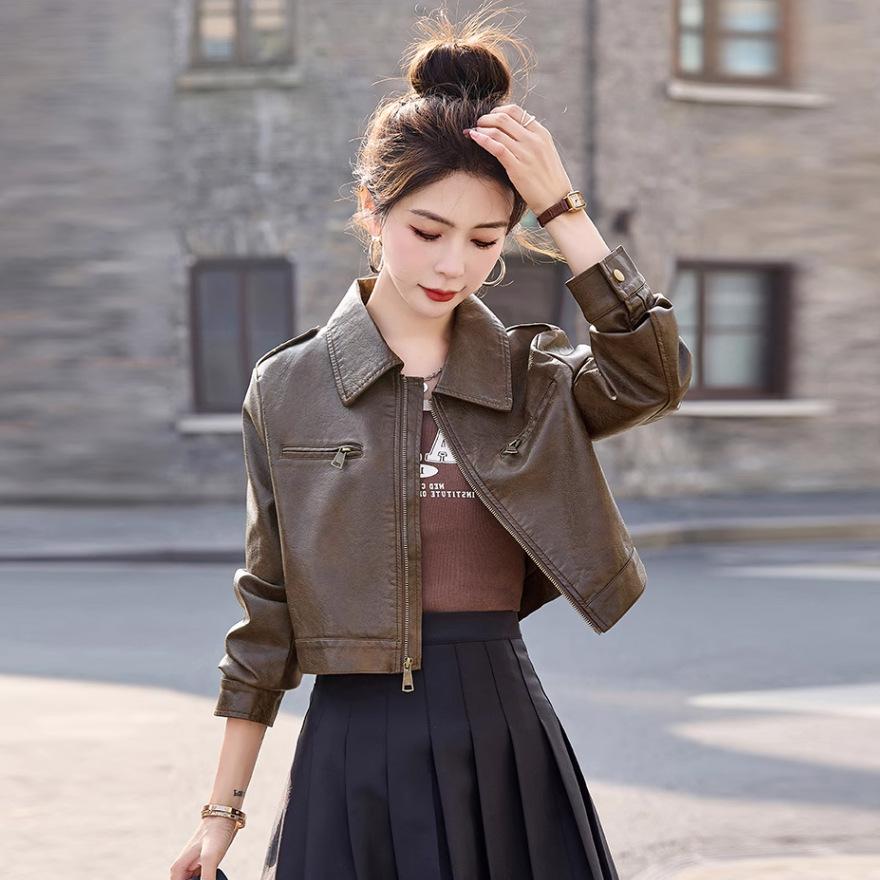 Дизайнерская кожаная куртка, короткое пальто, женская, весна и осень, новая тонкая маленькая куртка-косуха, топ XL кофейный