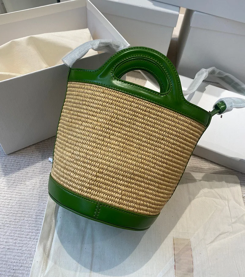 Дизайнерская соломенная прошитая кожаная пляжная сумка, портативные дамские сумочки на одно плечо с косым крестом, Дамская Летняя сумка дл...
