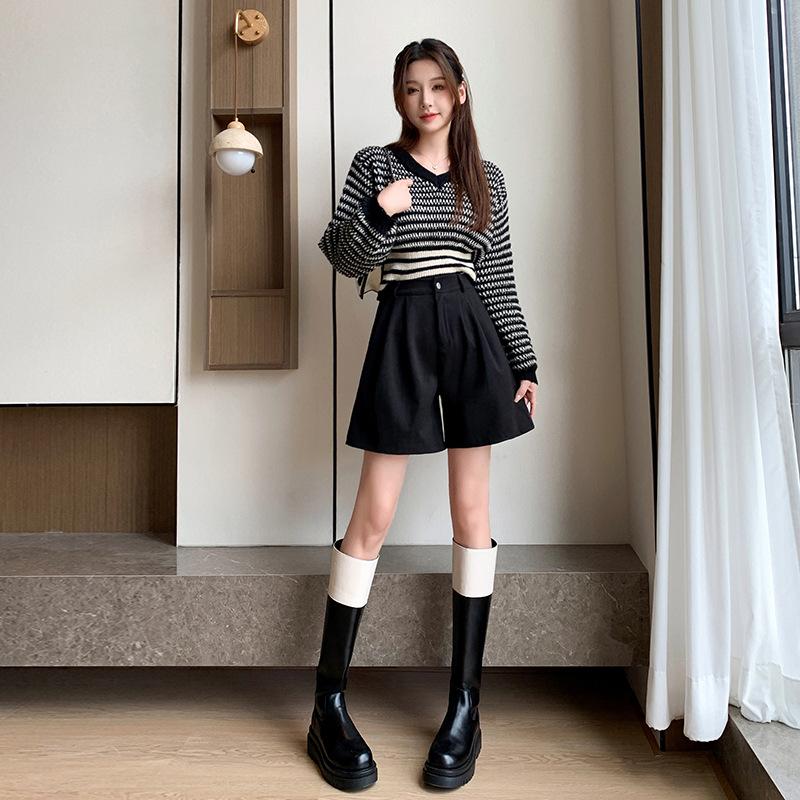Дизайнерские чувственные коричневые шерстяные шорты для женщин на осень и зиму, новый стиль, маленькие шорты с высокой талией и одной пуговицей 4XL