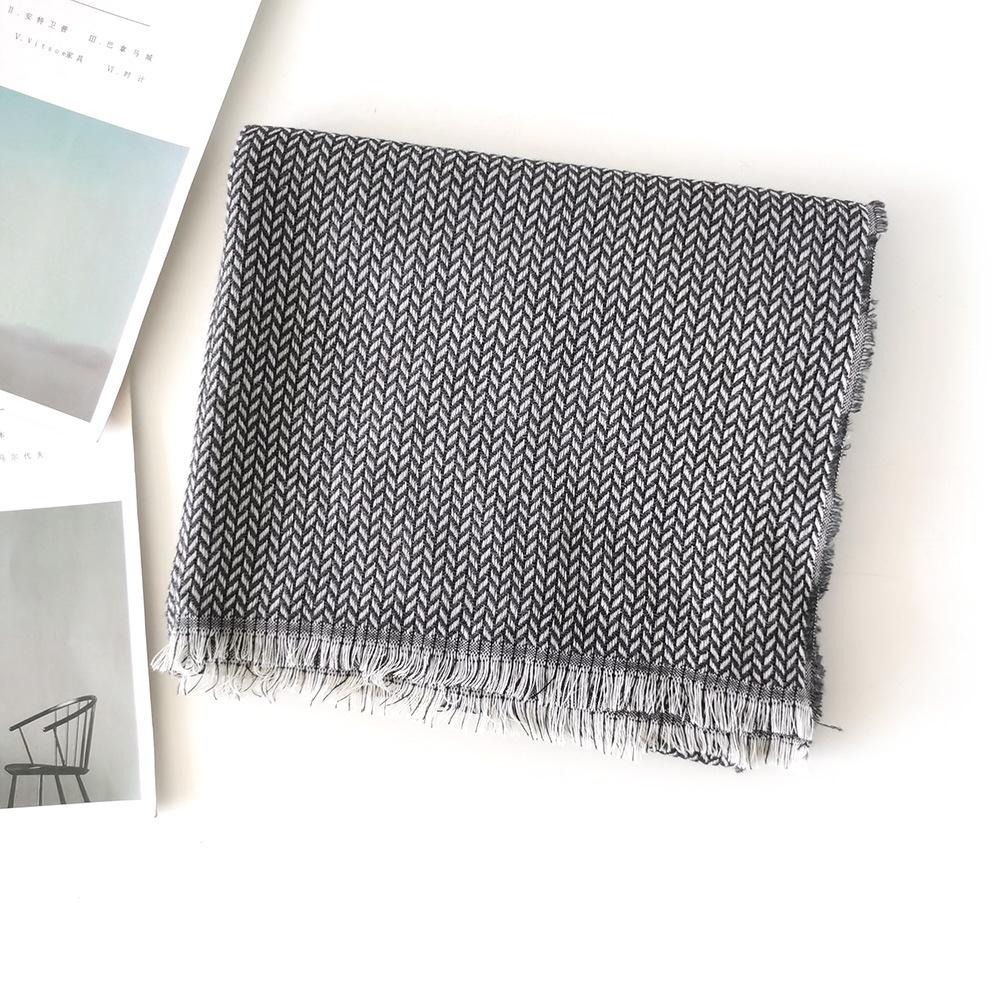 Дизайнерский шерстяной шарф высокого класса, зима, новый, короткий, с узором «колосок», мужской шарф для пары, теплая шаль чёрный