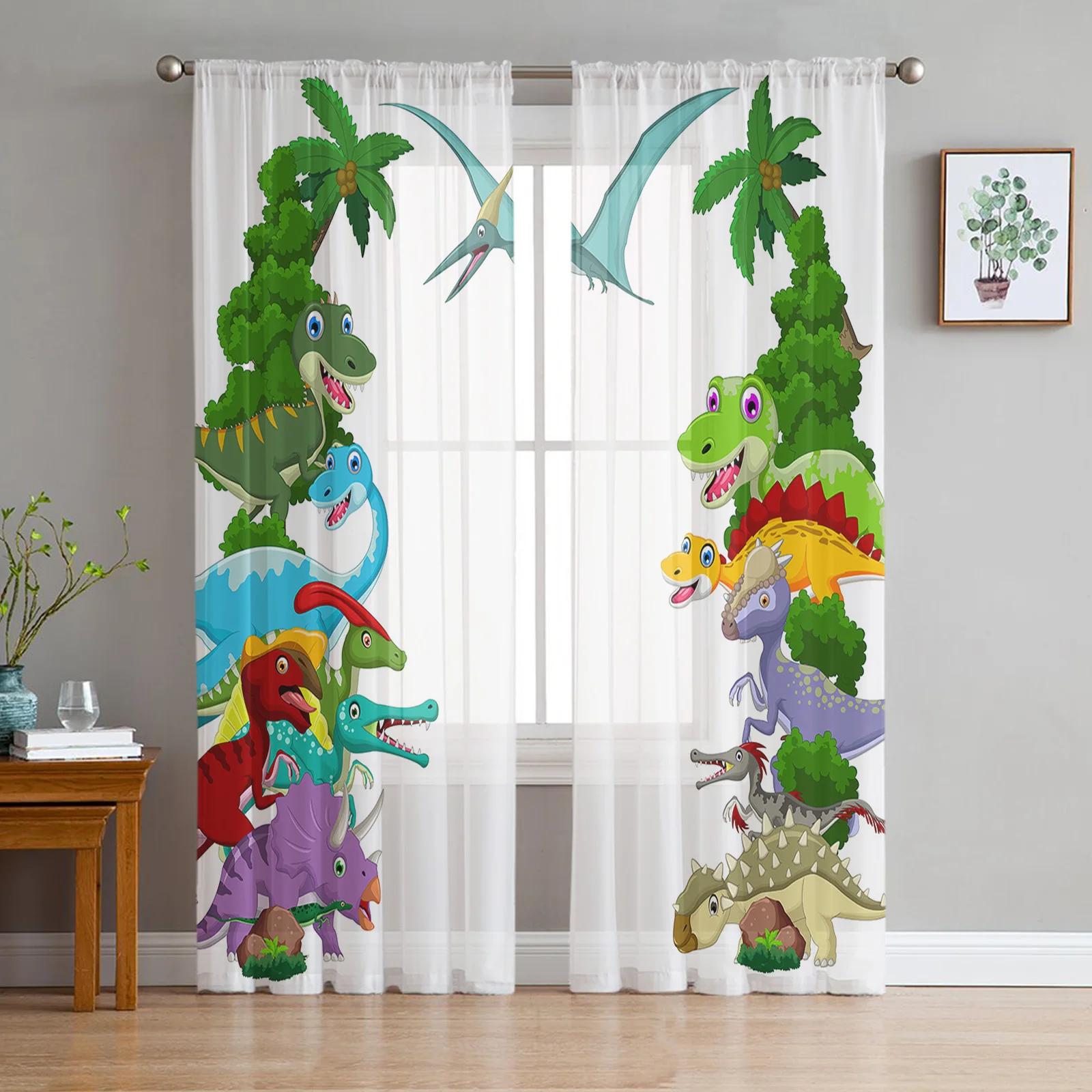 Динозавр Мультфильм Каваи Геометрические Тюль Прозрачные Шторы Для Гостиной Спальни Современные Вуаль Органза Шторы Драпировки W135 x H115cm x1&Grommet Top