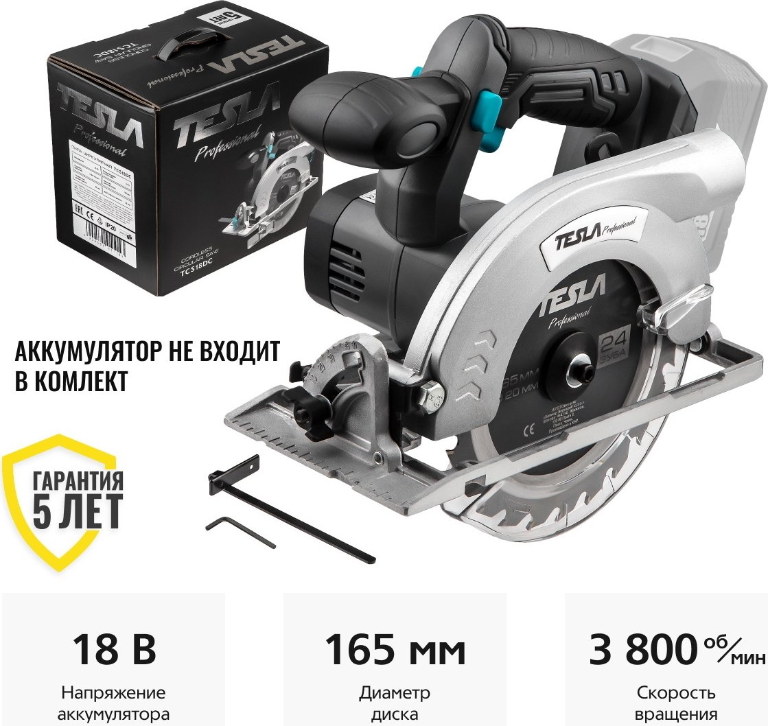 Дисковая (циркулярная) пила Tesla TCS18DC TO (без АКБ)