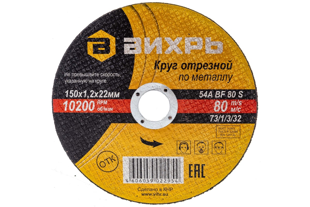 Диск отрезной Вихрь 73/1/3/32 ⌀15 см x 1.2 мм x 2.22 см, прямой, по металлу, 25 шт. (73/1/3/32), 73/1/3/32