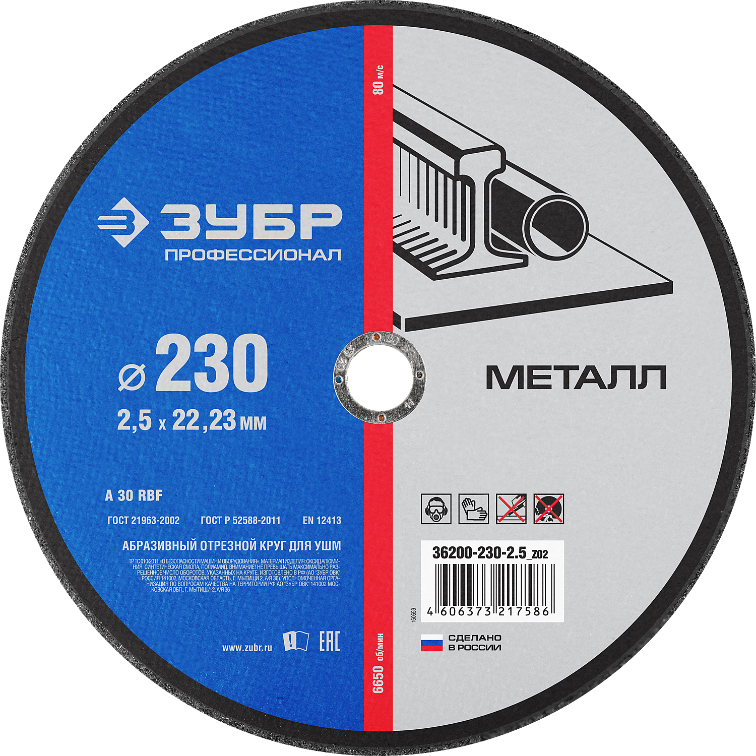 Диск отрезной Зубр ПРОФЕССИОНАЛ ⌀23 см x 2.5 мм x 2.22 см, прямой, по металлу, 1 шт. (36200-230-2.5)