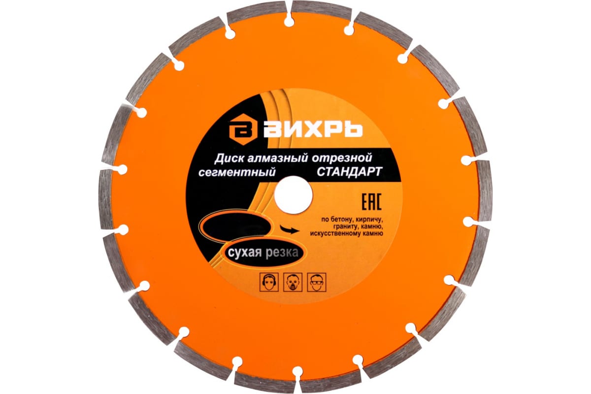 Диск отрезной алмазный Вихрь 73/10/3/12 Стандарт ⌀115 мм x 22.2 мм, прямой, по бетону, кирпичу, граниту, камню, 1 шт. (73/10/3/12), 73/10/3/12