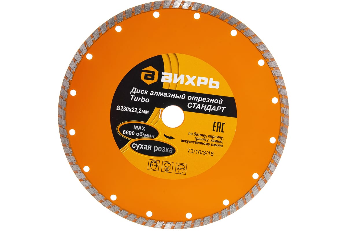 Диск отрезной алмазный Вихрь 73/10/3/18 Стандарт ⌀230 мм x 22.2 мм, прямой, по бетону, кирпичу, граниту, камню, 1 шт. (73/10/3/18), 73/10/3/18