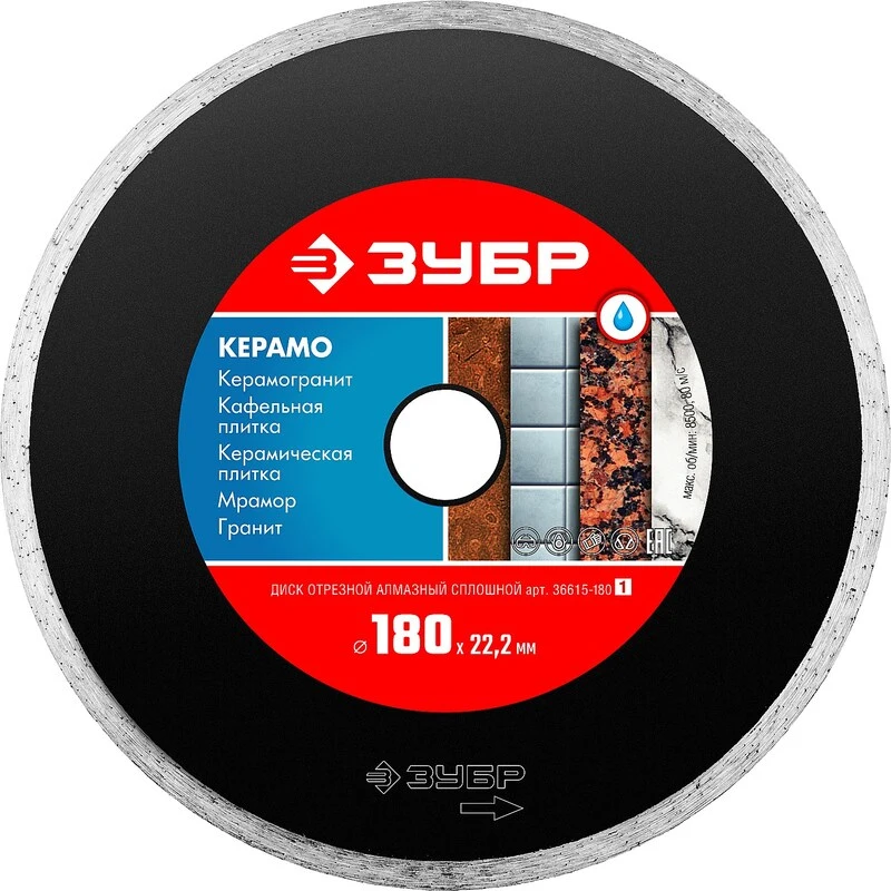 Диск отрезной алмазный Зубр Мастер KERAMO ⌀18 см x 2.22 см, прямой, по керамограниту, керамике, мрамору, 1 шт. (36615-180_z01), Мастер