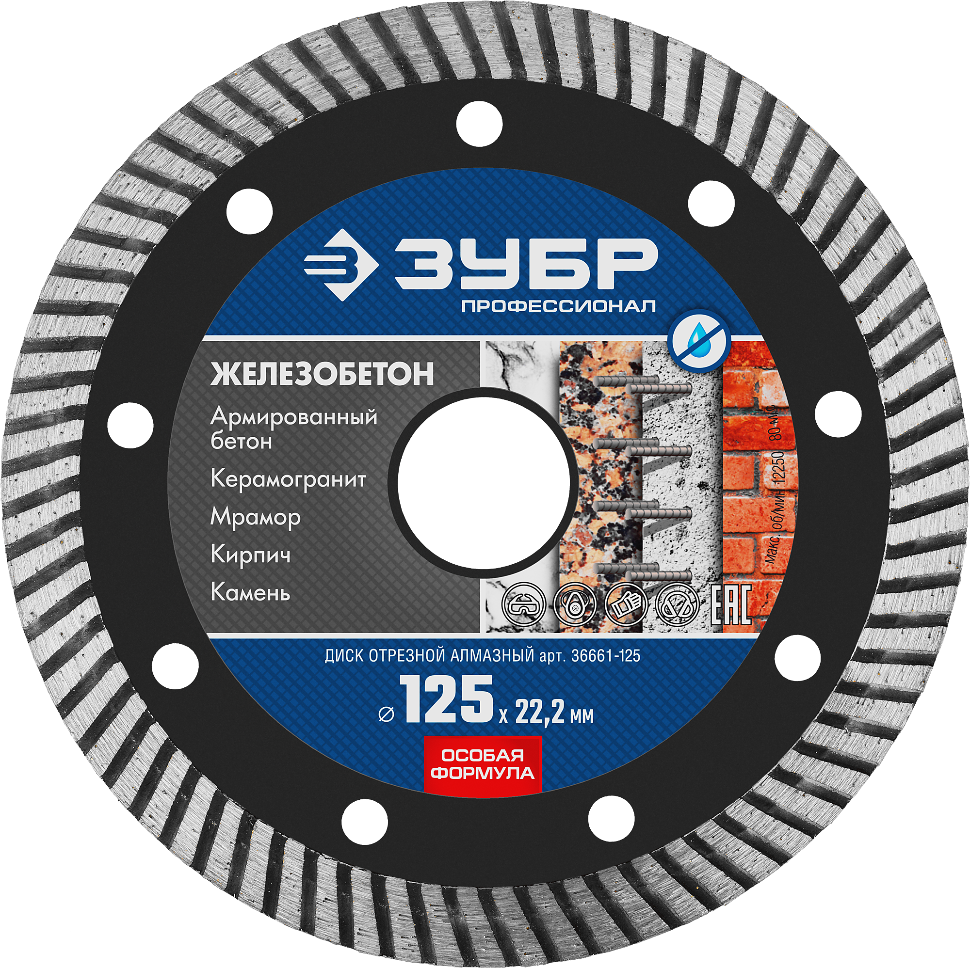 Диск отрезной алмазный Зубр ПРОФЕССИОНАЛ ⌀12.5 см x 2.22 см, прямой, по железобетону, армированному бетону, 1 шт. (36661-125)