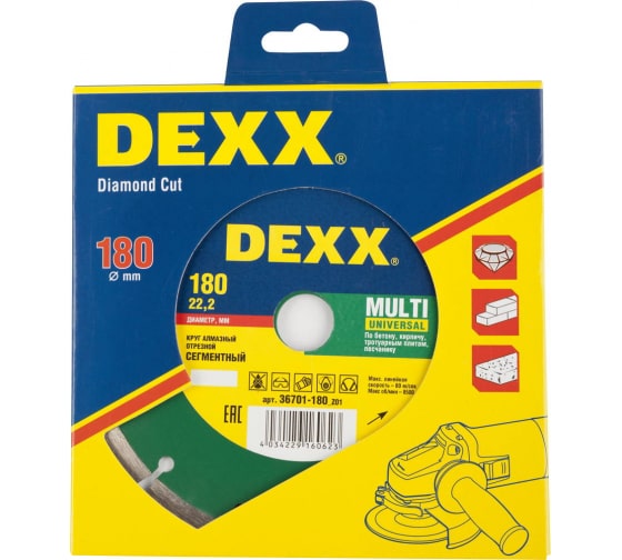 Диск отрезной алмазный DEXX Multi Universal ⌀18 см x 2.2 мм x 2.22 см, прямой, бетон, камень, кирпич, 1 шт. (36701-180_z01)