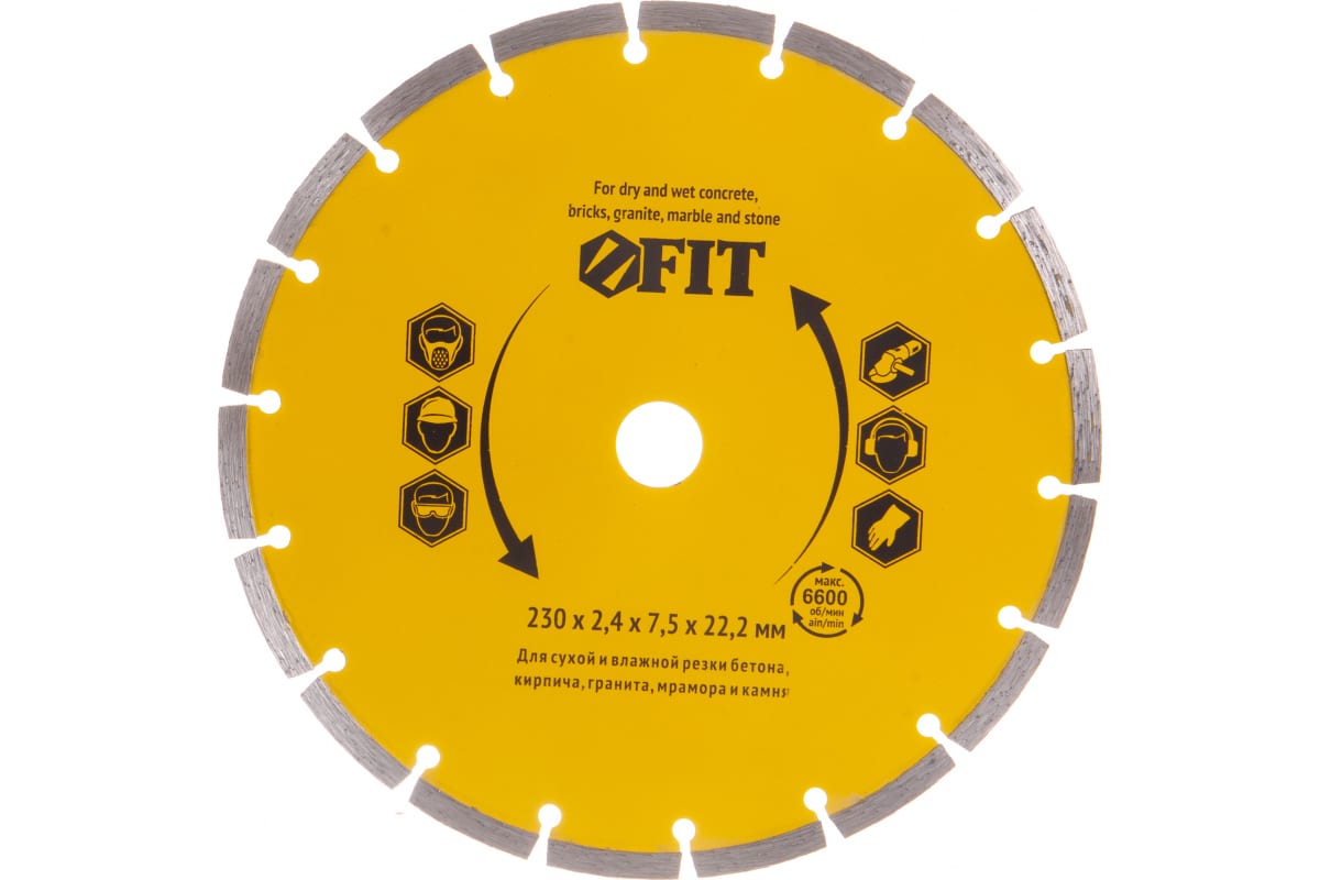 Диск отрезной алмазный FIT ⌀230 мм x 2.4 мм x 22.2 мм, прямой, по бетону, кирпичу, граниту, керамике, камню, мрамору, 1 шт. (37467)