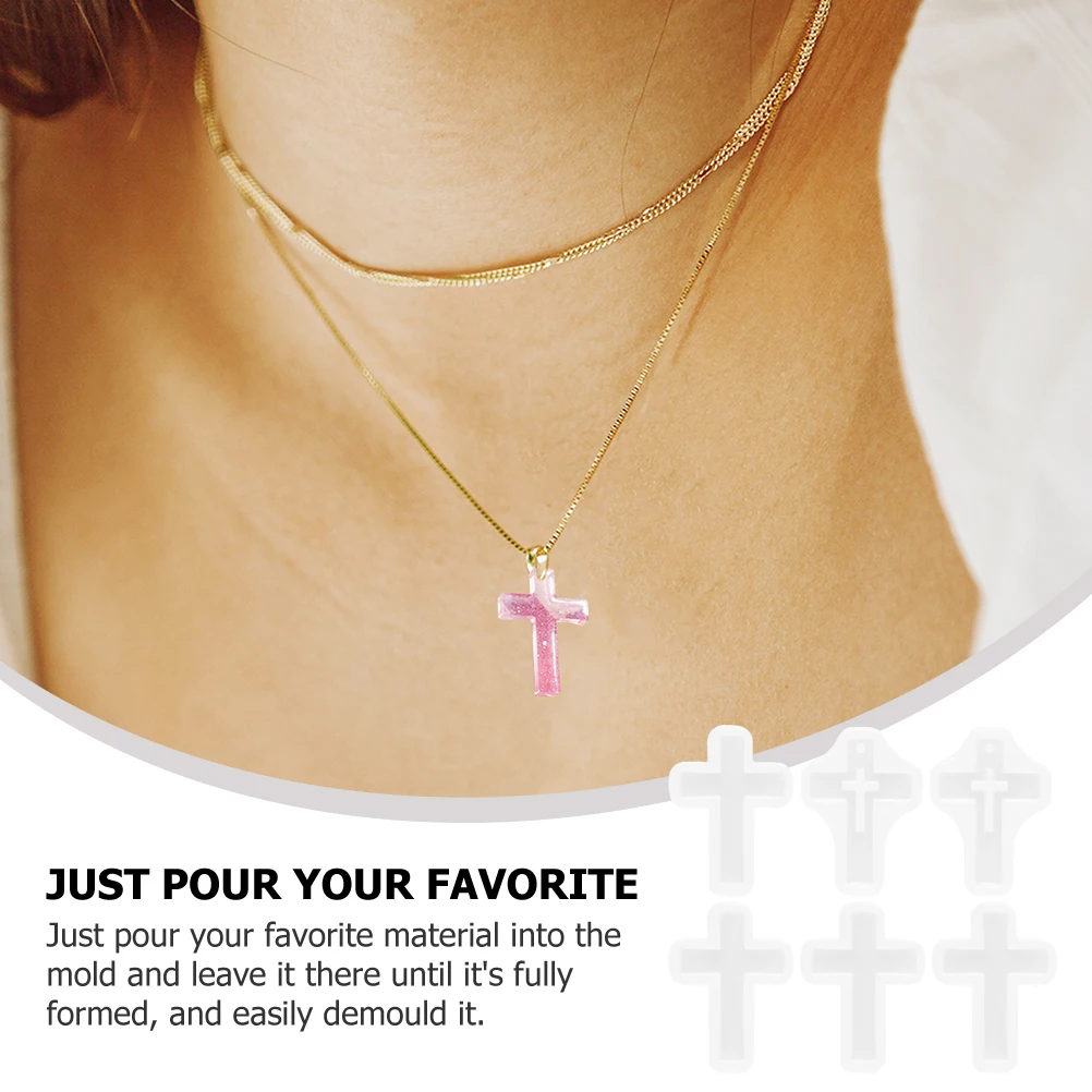 6pcs Cross Pendant Shaped DIY Epoxy Silicone Molds H Reusable Decorative Necklace Charm Craft Tool Garden Supplies