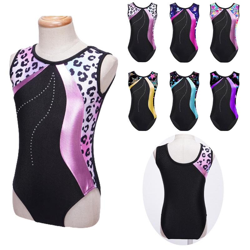 Дитяче гімнастичне купальник для балету та танцювальний одяг без рукавів із принтом 3-4 Years темно-синього кольору/гарячі рожевого кольору