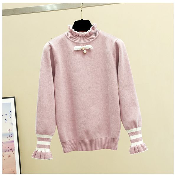 2021 new ruffled collar women autumn winter thick female jumper bowtie bead preppy campus school girl sweater pullove 3wzv, White;black