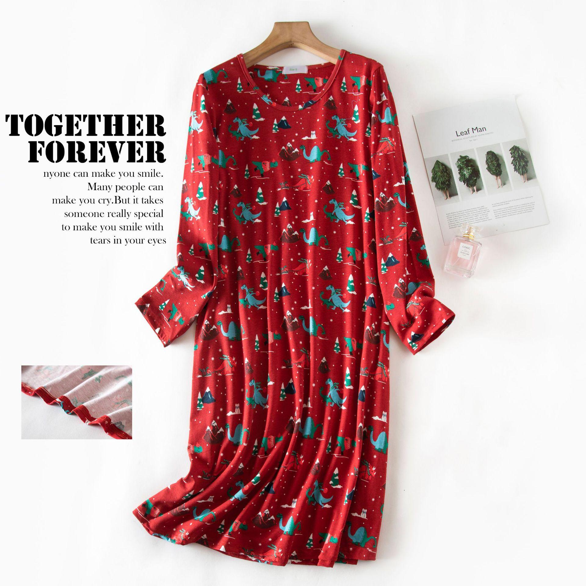 Длинная ночная рубашка больших размеров, симпатичная мультяшная ночная рубашка для женщин, осенняя хлопковая ночная рубашка с круглым воротником и длинными рукавами, одежда для сна XL
