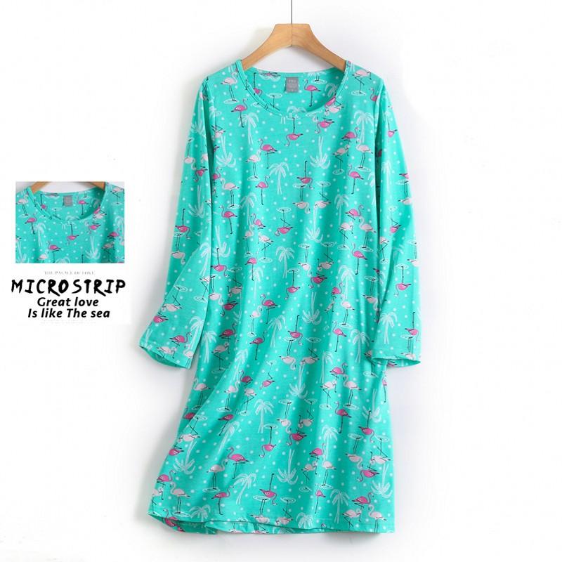 Длинная пижама больших размеров, милые ночные рубашки с героями мультфильмов, женская осенняя хлопковая ночная рубашка с круглым воротником, одежда для сна с длинными рукавами L синий