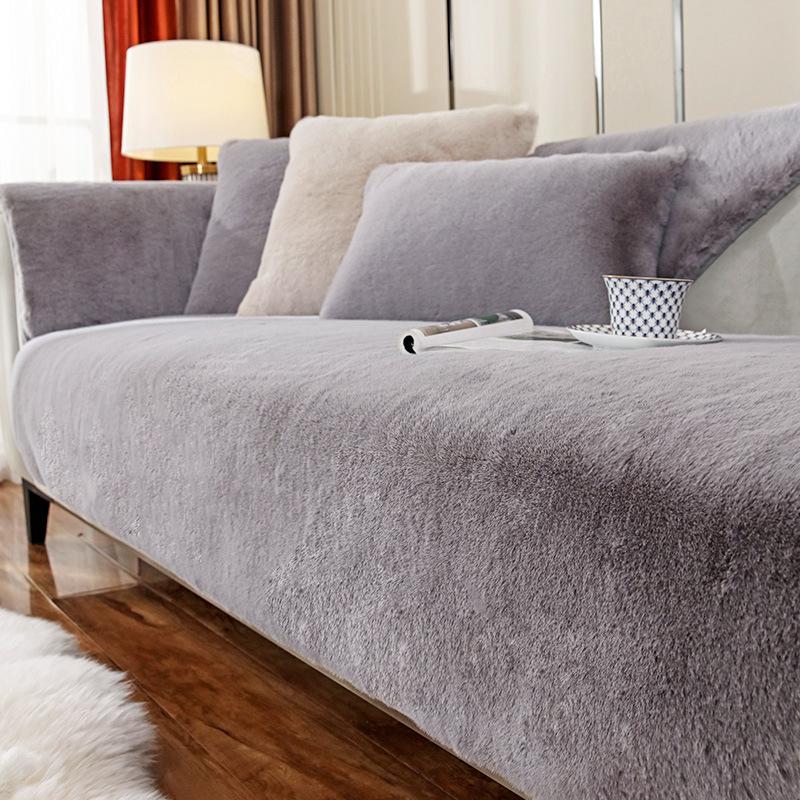 Длинная плюшевая мягкая удобная подушка для сиденья дивана, зимняя утолщенная теплая коврик для дивана, однотонный противоскользящий L-образный чехол для дивана, пылезащитный чехол, наволочка 70x70cm темно-серого