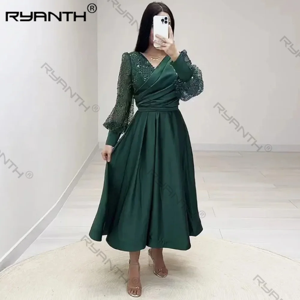 Длинное вечернее платье с V-образным вырезом, ТРАПЕЦИЕВИДНОЕ Пятнистое платье на молнии сзади, платье для матери невесты, платье с блестками и пышными рукавами, 2024