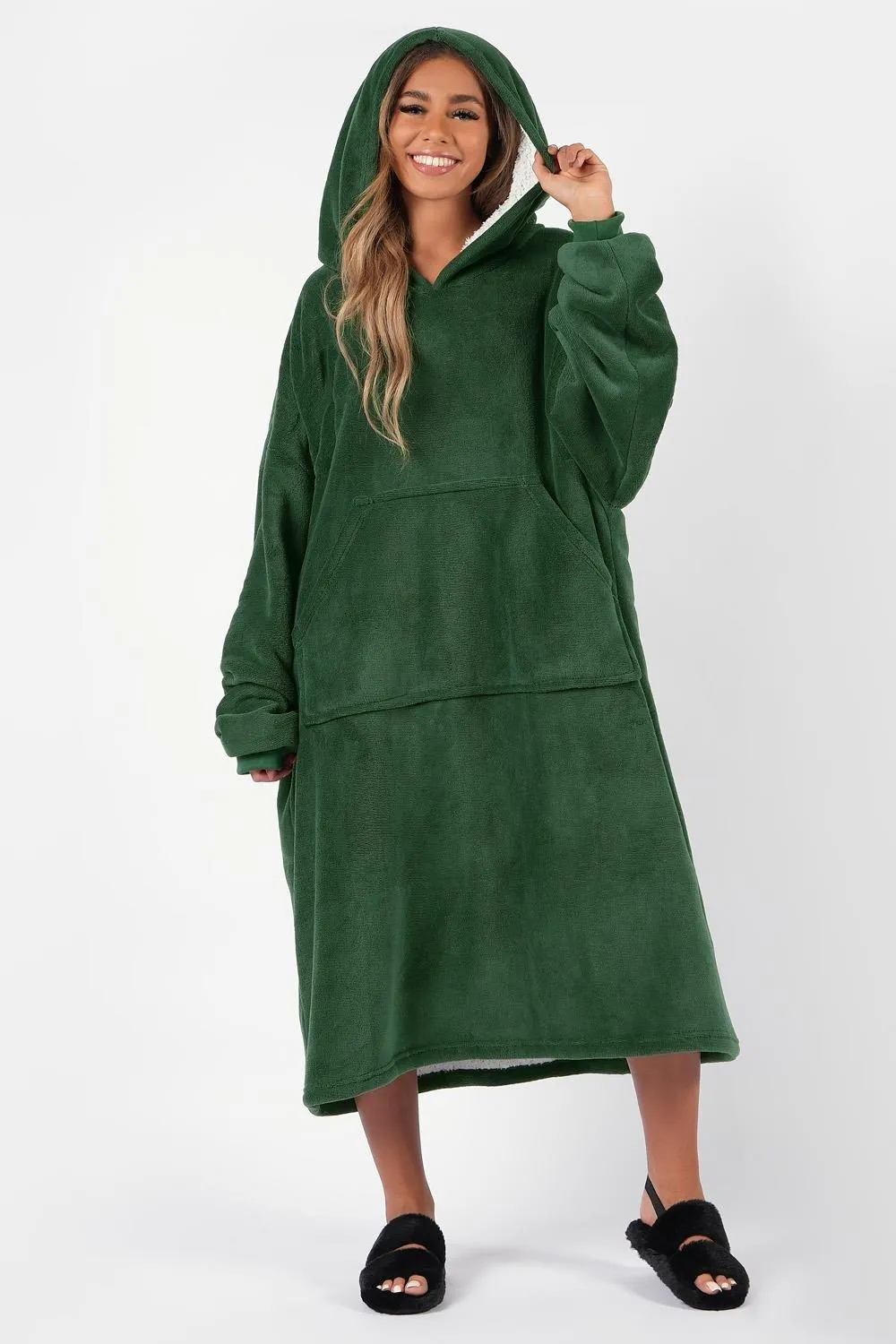 Длинное одеяло с капюшоном из флиса из шерпы большого размера Sienna, зеленый
