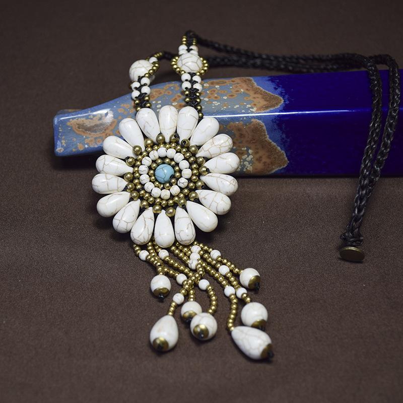 Длинное ожерелье из натурального камня в стиле бохо, женская ретро вощеная веревка, ручная работа, цепочка для свитера с цветком