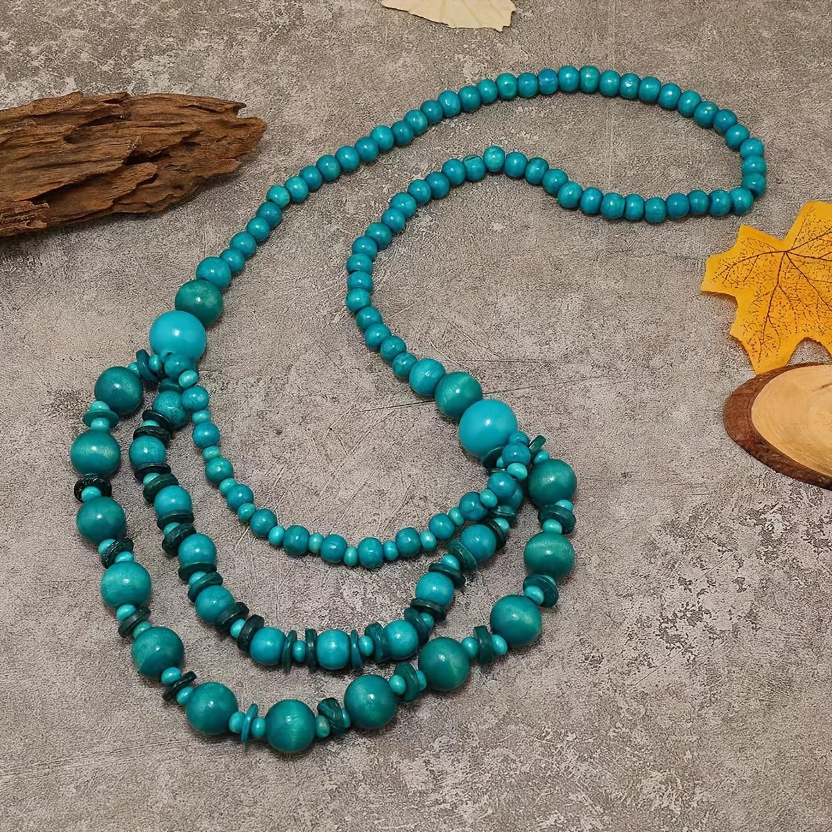 Длинное ожерелье из скорлупы кокоса в стиле бохо синий