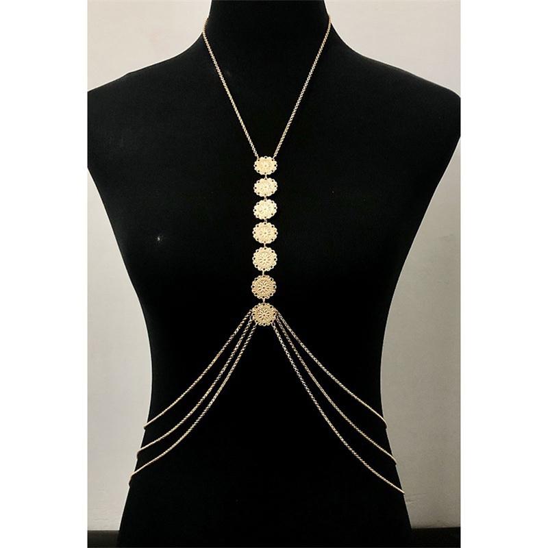 Длинное ожерелье-цепочка, пляжное ожерелье, резная цепочка на талию, цепочка на живот, украшения для тела золотой