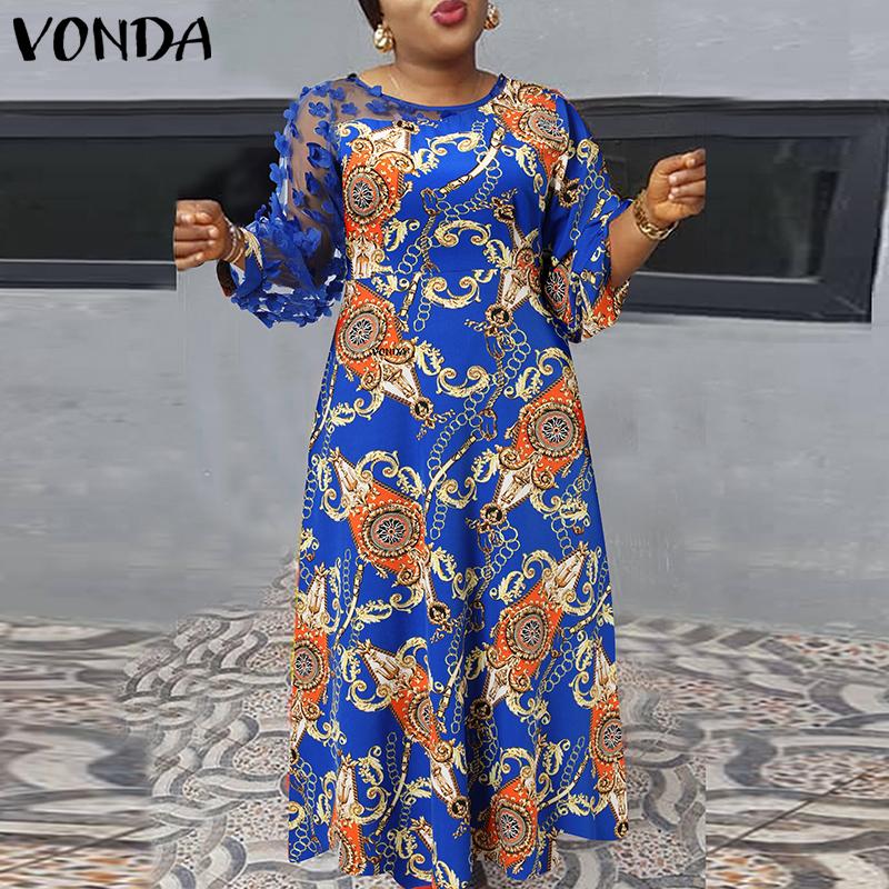 Длинное платье с пышными рукавами и принтом VONDA — Женская мода весеннего сезона