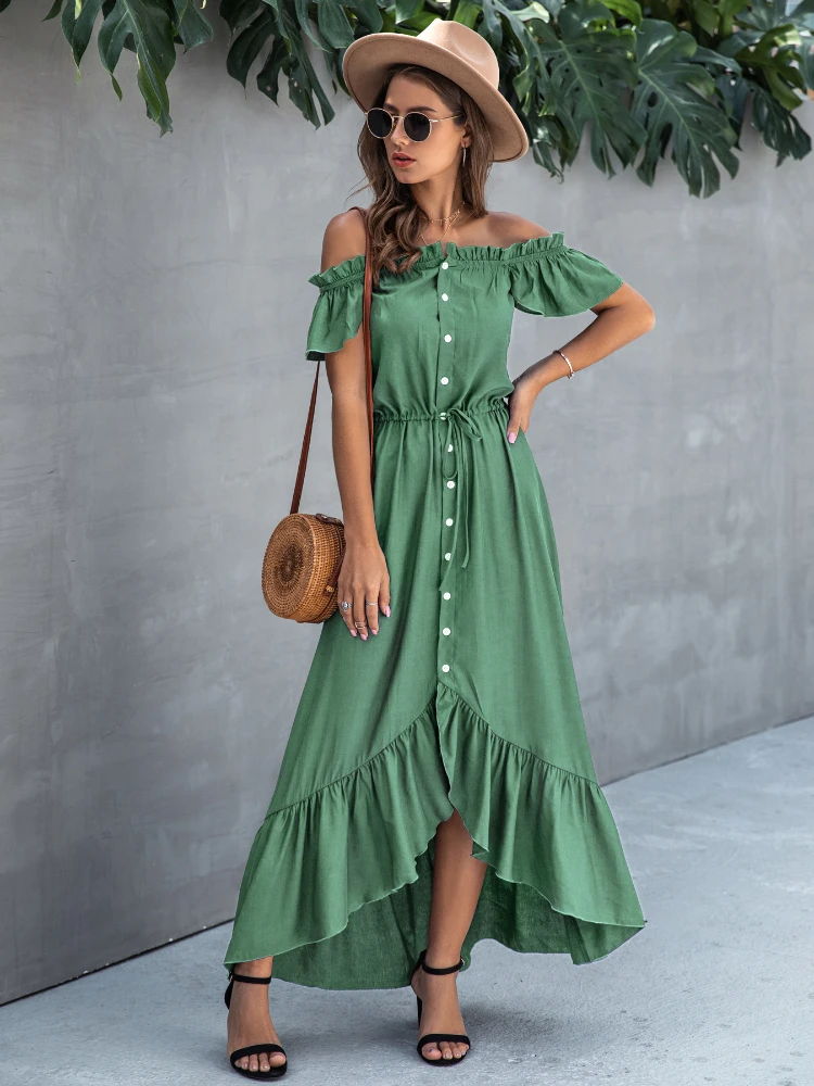 Длинное сексуальное платье, однотонное женское платье с открытыми плечами, летние пляжные платья для отпуска, Свободные повседневные плать...
