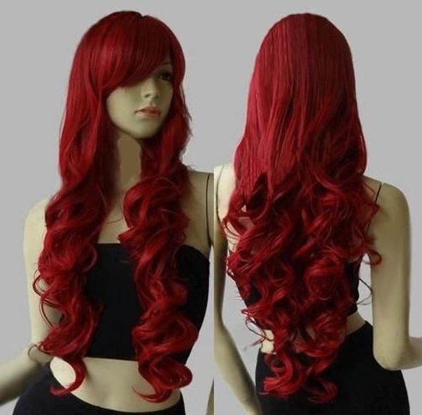 Длинные Волнистые Костюм Партии Косплей Парик Темно-Красный 80 См Синтетические П