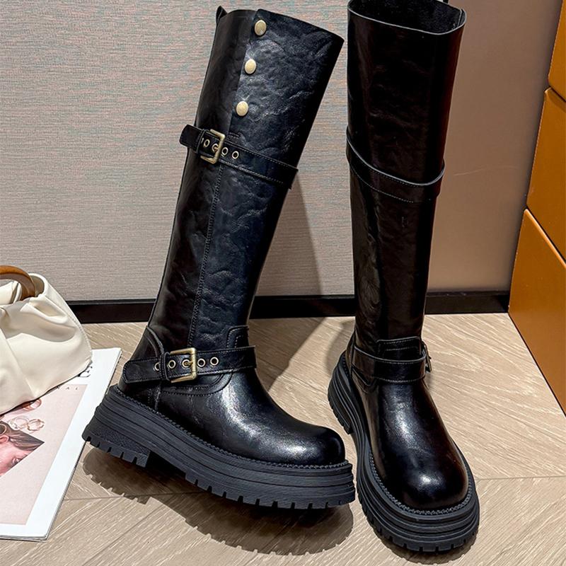 Длинные женские сапоги на плоской подошве, платформа, сапоги до колена, зимние дизайнерские мотоциклетные сапоги, новый тренд, модные, для ходьбы, женские высокие сапоги 40