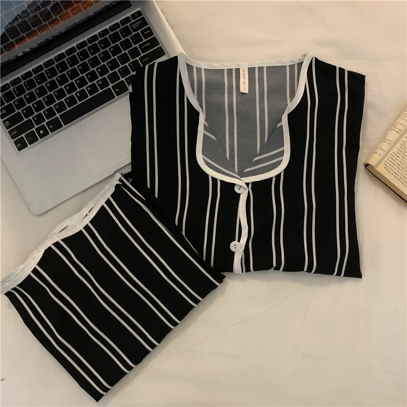 Длинные пижамные комплекты в полоску, женская элегантная свободная прямая ночная рубашка, Весенняя нежная мягкая стильная пижама в стиле Ins, шикарная домашняя одежда