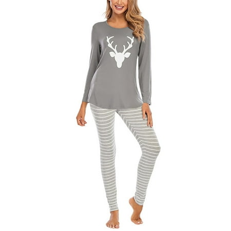 2PCS Women Long Sleeve Pajama Sets Loose Striped Print Sleepwear Loungewear Set Nightwear Casual Home Suit