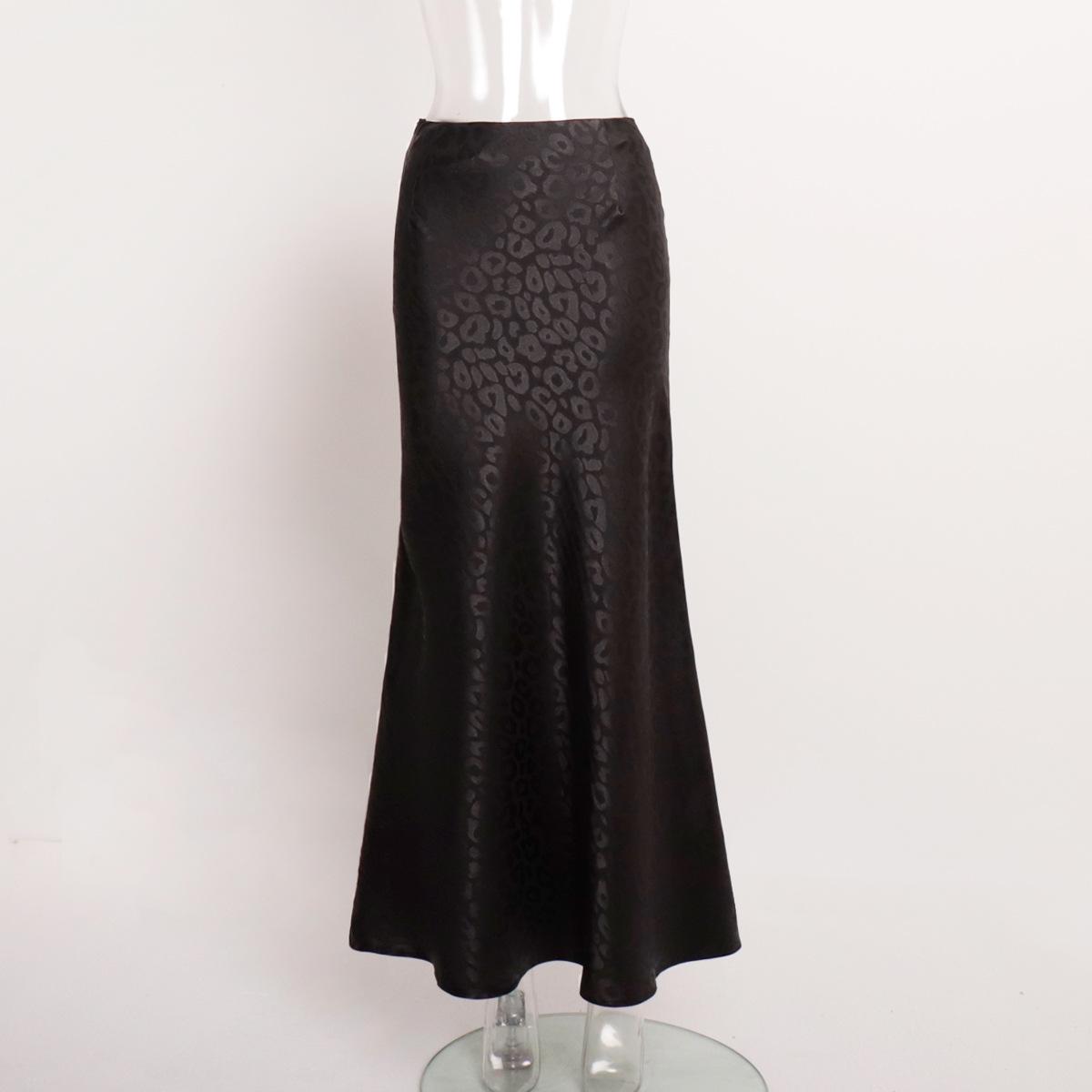 Длинные юбки для женщин, модные платья, высокая талия, эластичный пояс, макси-юбка, женская повседневная шелковая атласная спортивная юбка, эластичная А-силуэт с леопардовым принтом M чёрный