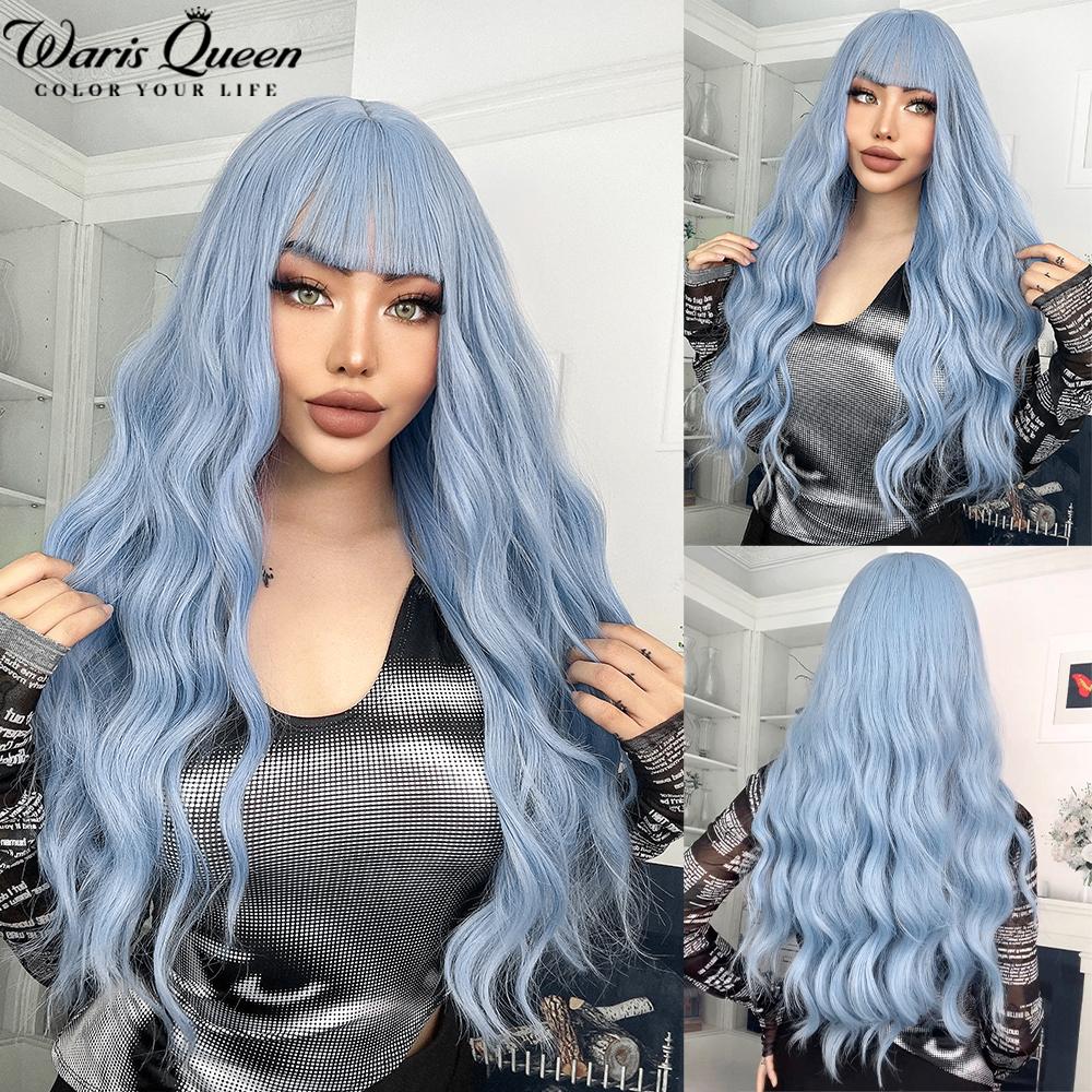 Длинный волнистый черный и розовый синтетический парик для женщин с челкой, натуральная термостойкая часть, косплей, вечерние парики в стиле Лолиты, повседневные волосы TB2020022-8