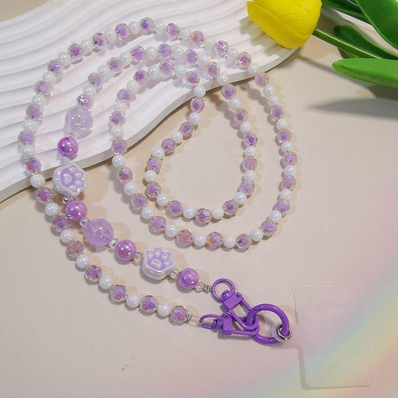 Длинный ремешок для мобильного телефона, ожерелье через плечо, цепочка, ремешок, ручная работа, универсальная пряжка, зажим для чехла для телефона фиолетовый