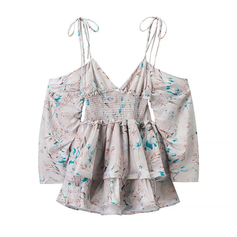 Для Осени Новая Женская одежда 2025 Западный Стиль Мода Слинг V-образный вырез Воланы Слои Плиссе Отпуск Короткое платье Gray L