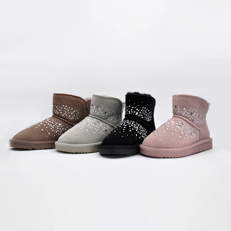 Для девочек женская зимняя обувь сапоги OEM ODM ручная пресс-форма с овечьим мехом Меховые сапожки средней высоты теплая уютная уличная женска...