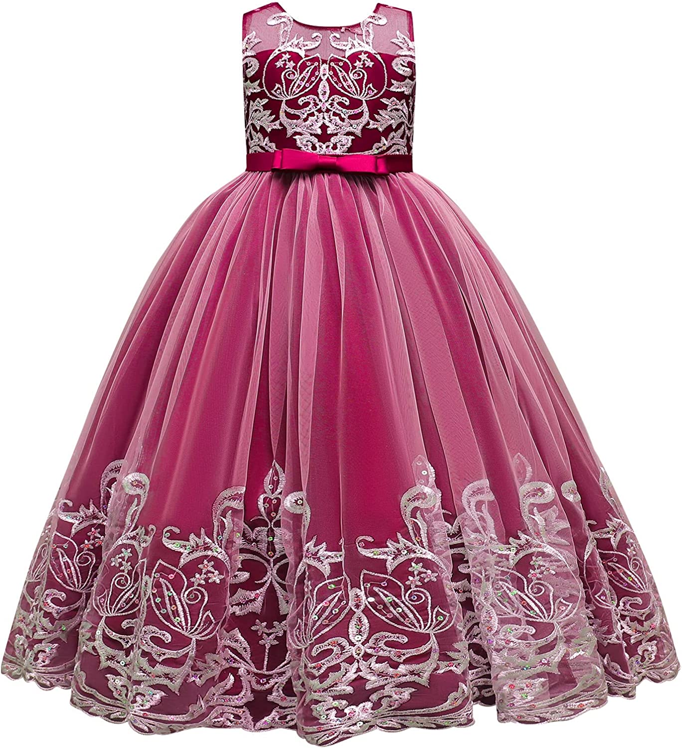 Для детей от 3 до 12 лет пышное кружевное тюлевое платье с вышивкой для детей, свадебное платье подружки невесты, дня рождения, вечерние, официальное платье принцессы 130 темно-красного