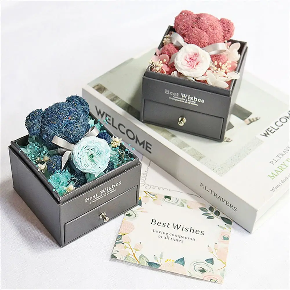 Для ее Девушки День Святого Валентина День рождения Сохраненная Роза неувядающие цветы милый медведь шкатулка для ювелирных изделий