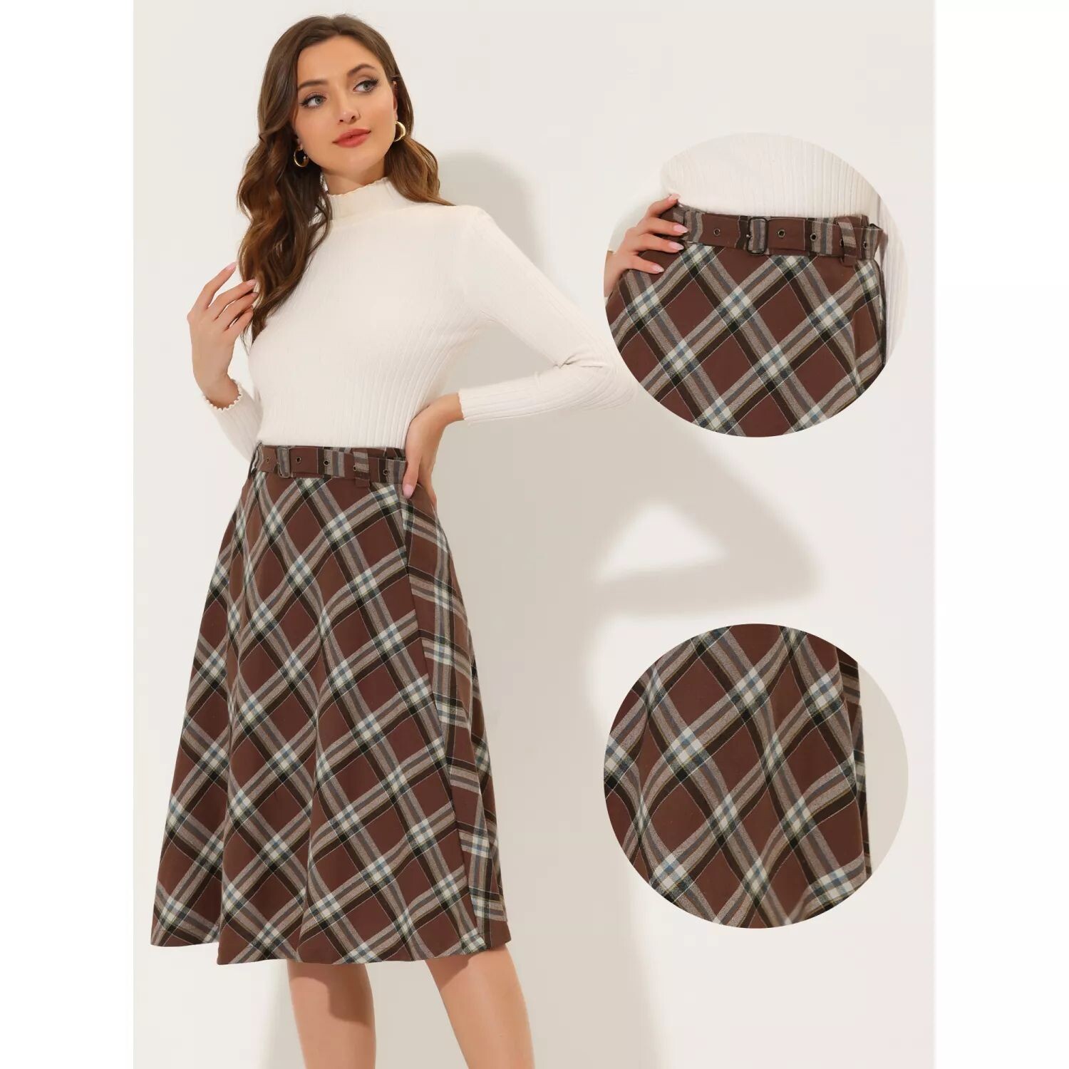 Женский костюм на Хэллоуин, клетчатые юбки-трапеции средней длины с высокой талией и поясом ALLEGRA K