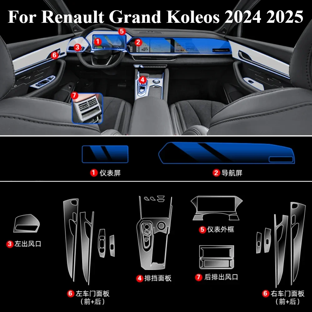 Для Renault Grand Koleos 2025 2024, защитная пленка из полипропилена, аксессуары, интерьерная прозрачная навигационная панель из ТПУ, центральная консоль