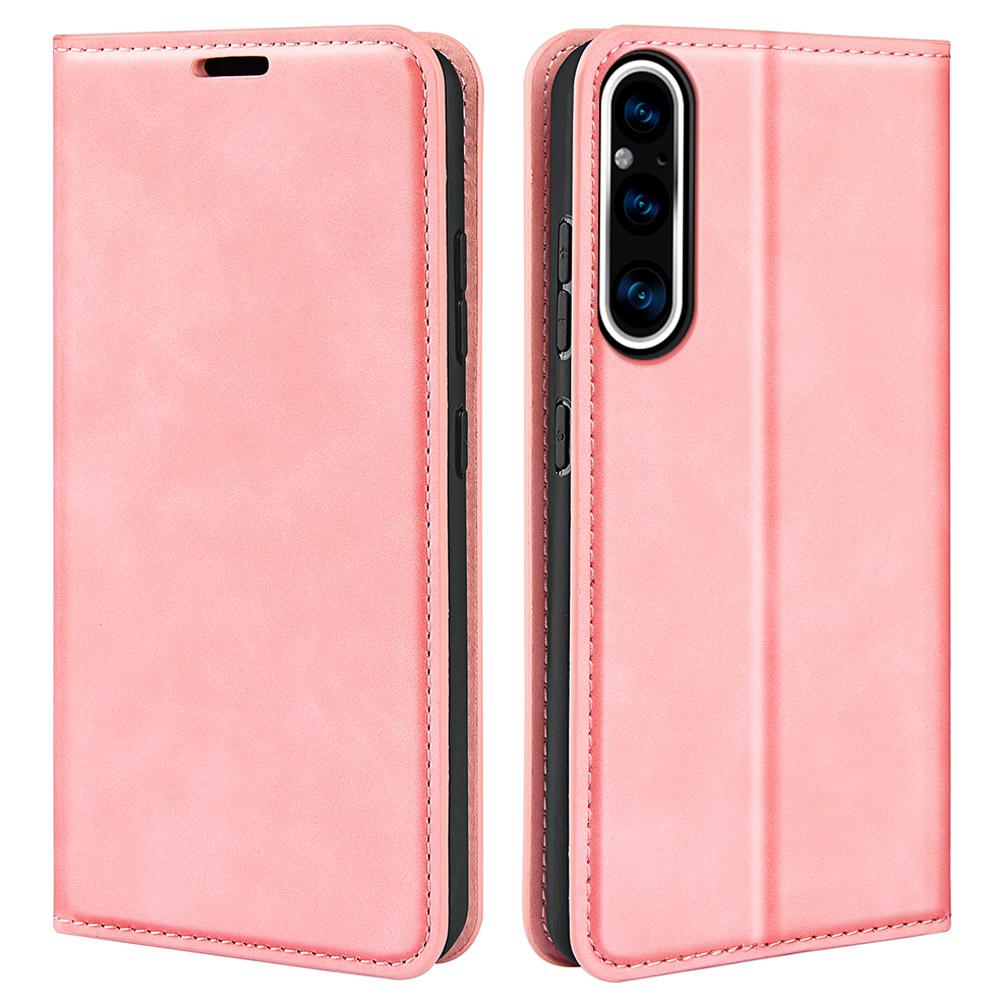 Для Sony Xperia 1 V Кожаный чехол для телефона с эффектом прикосновения к коже Подставка Кошелек Защитная крышка для телефона Pink