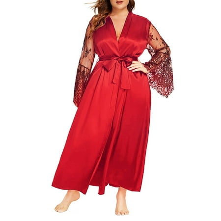 LAPA Women s Plus Size Satin Lace Lingerie Robe Nightgown Bathrobe Sleepwear