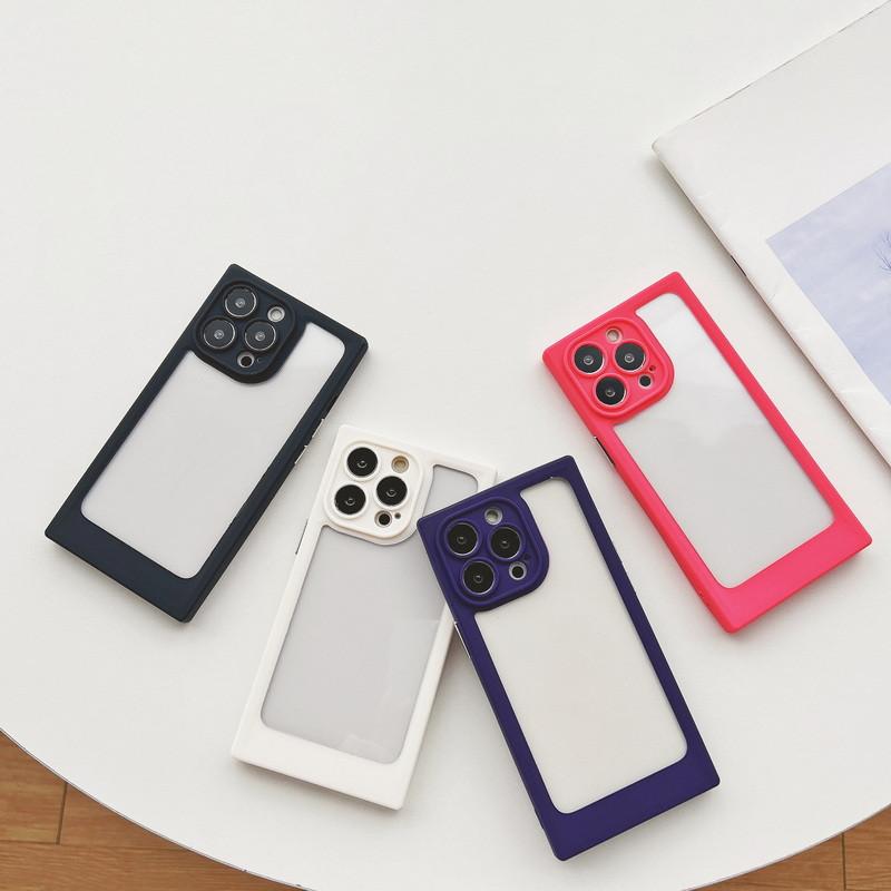 Для iPhone 15 Pro Max 14 13 Противоударный квадратный чехол для телефона Цветная прямая рамка Прозрачная задняя крышка