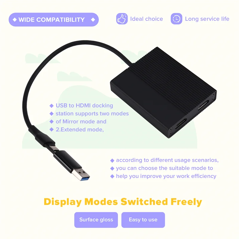 Док-станция Displaylink 4K 60 Гц USB C/USB 3.0 Dual HDTV для Windows, Macos, Mac M1/M2, Android, Chrome