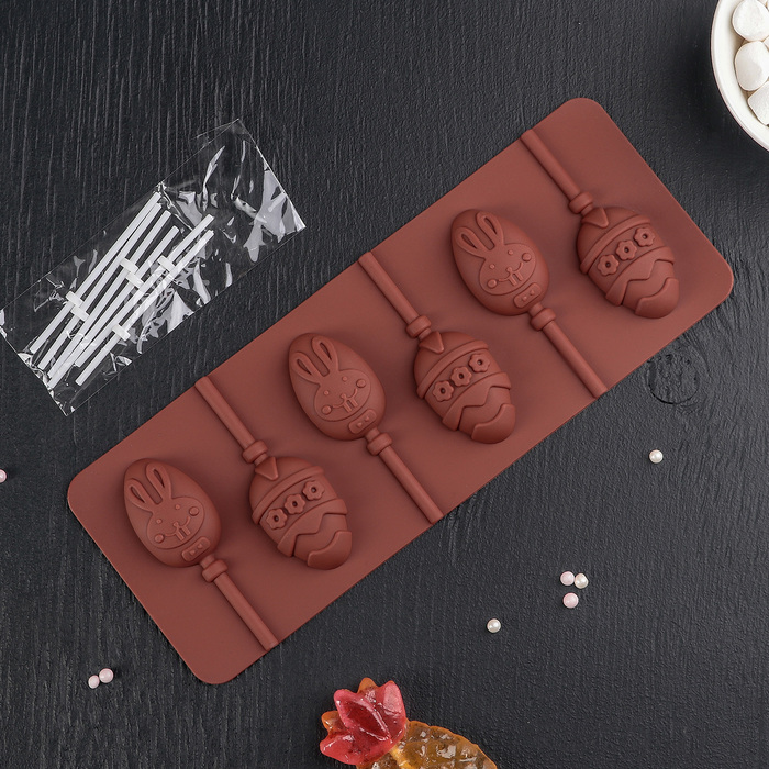 Доляна Форма для леденцов Доляна «Пасхальный кролик», 26x10x1 см, 6 ячеек, с палочками 6 ш, Коричневый