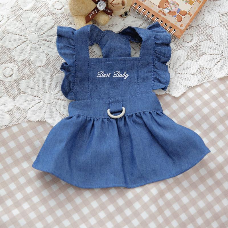 Домашнее животное маленькая собака собачья одежда имитация джинсы можно буксировать платье принцессы весна и лето тонкий S темно-синий