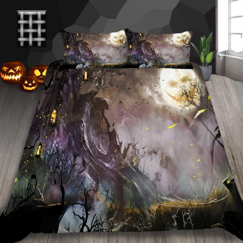 Домашнее постельное белье на Хэллоуин, односпальная кровать, двуспальная кровать, полноразмерная лампа с тыквой, наволочка с призрачным принтом и пододеяльник, 2/3 комплекта постельного белья для спальни EU Single 135x200cm